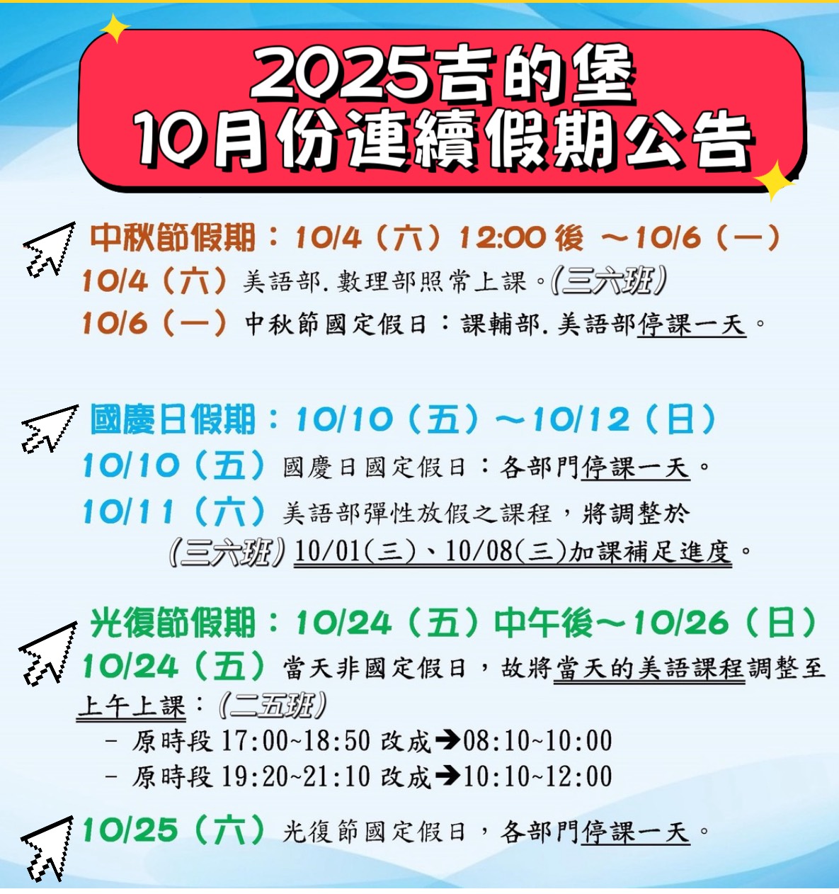 [114年] 十月連假公告